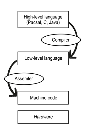 High-level languages, however, are closer to human languages; they use forms resembling English, which makes programming easier. The program is translated into machine code by software called a