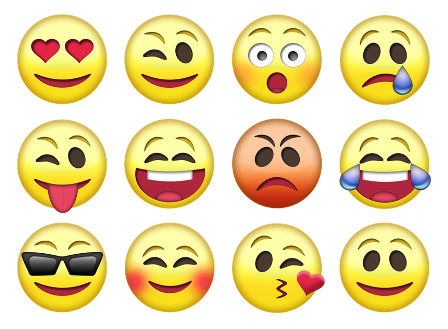 emotions): little pictures either made with characters from the keyboard such as :-) for happy, :-o surprised, :-( sad, etc. or downloaded images and animations.